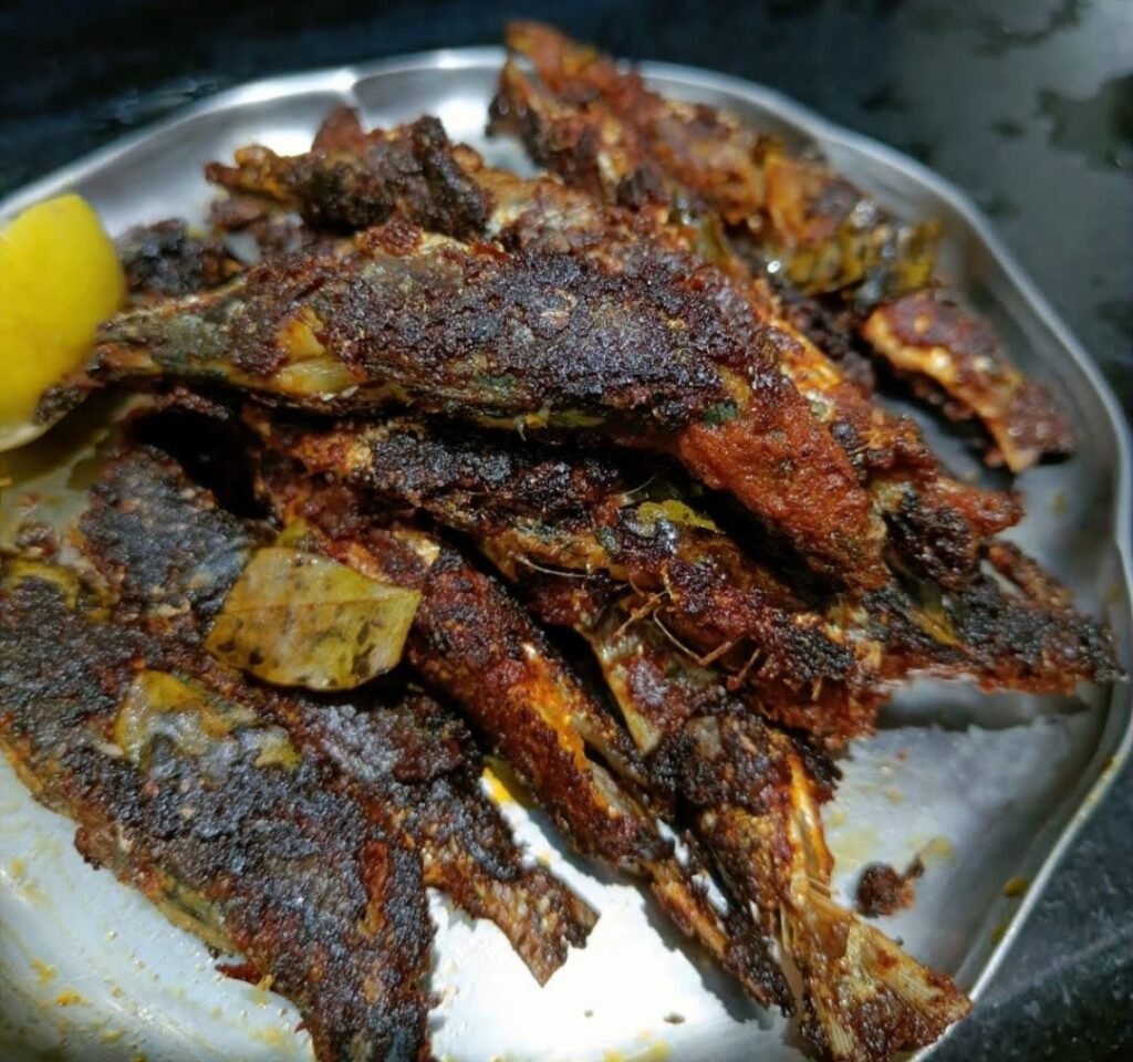 5. ಸರ್ವ್ ಮಾಡುವುದು: ಫ್ರೈ ಮಾಡಿದ ಮೀನನ್ನು ಕಿಚನ್ ಟಿಶ್ಯೂ ಮೇಲೆ ಇಟ್ಟು ಎಣ್ಣೆ ಹೀರಿಸಿಕೊಳ್ಳಿ. ನಂತರ ಲಿಂಬು ತುಂಡುಗಳು ಮತ್ತು ಕರಿಬೇವು ಜೊತೆ ಬಿಸಿ ಬಿಸಿ ಸರ್ವ್ ಮಾಡಿ.