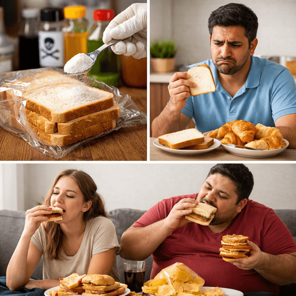 ಬ್ರೆಬ್ರೆಡ್ ಹೆಚ್ಚು ದಿನ ಉಳಿಯಲು ಪ್ರಿಸರ್ವೇಟಿವ್ಸ್ ಸೇರಿಸಲಾಗುತ್ತದೆ. ಇದು ಆರೋಗ್ಯಕ್ಕೆ ಹಾನಿಕರವಾಗಬಹುದು. ಇದು ಆರೋಗ್ಯದ ಮೇಲೆ ಪರಿಣಾಮ ಬೀರುತ್ತದೆ.