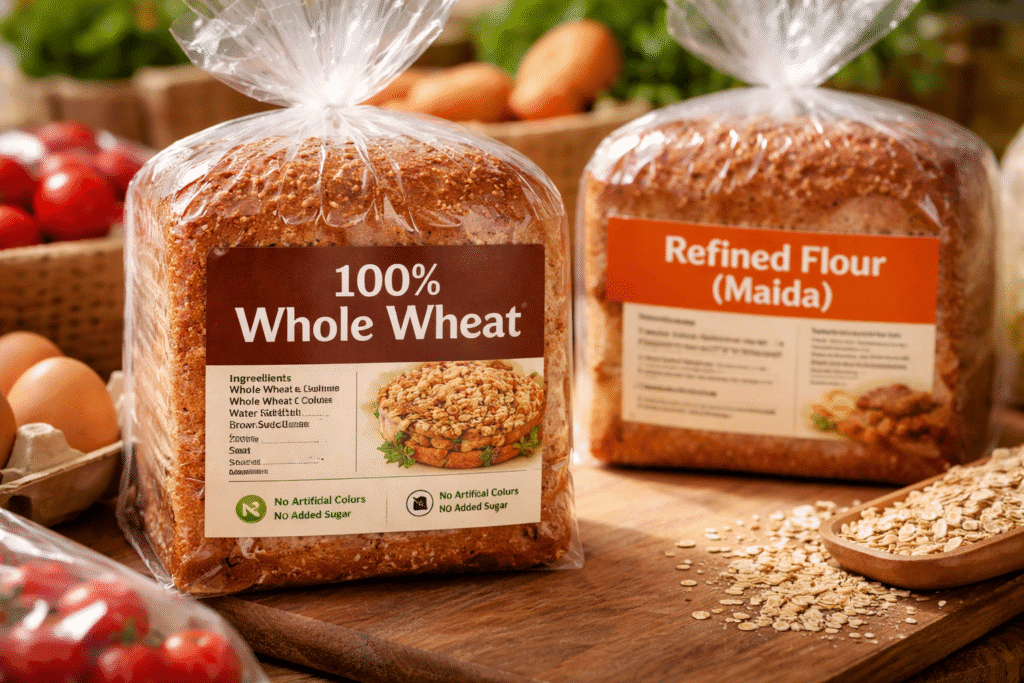 - “100% Whole Wheat” ಎಂದು ಬರೆಯಲಾಗಿದೆಯೇ