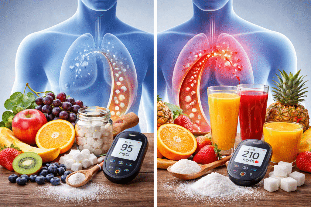 ಜ್ಯೂಸ್ : ಫ್ರೂಟ್ ಜ್ಯೂಸ್ vs ಸಂಪೂರ್ಣ ಹಣ್ಣುಇವುಗಳಲ್ಲಿ ಸಕ್ಕರೆ ವೇಗವಾಗಿ ರಕ್ತದಲ್ಲಿ ಸೇರಿ ಸಡನ್ ಶುಗರ್ ಸ್ಪೈಕ್ ಉಂಟುಮಾಡುತ್ತದೆ