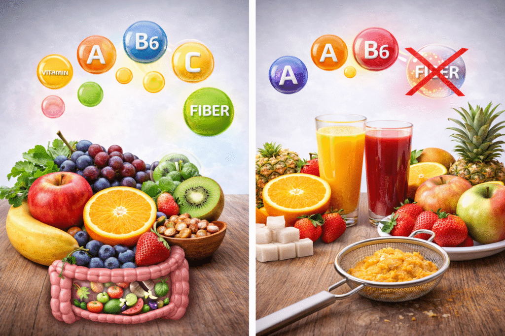 “ಫ್ರೂಟ್ ಜ್ಯೂಸ್ vs ಸಂಪೂರ್ಣ ಹಣ್ಣು” ಎಂಬ ಪ್ರಶ್ನೆಗೆ ಸರಳ ಉತ್ತರ: