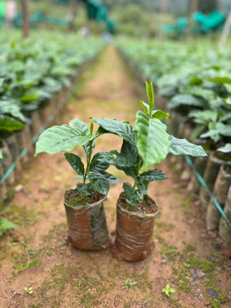 - ಕಾಫಿ ಗಿಡ ಪ್ಲಾಸ್ಟಿಕ್ ಗೆ ತುಂಬಿಸುವ ವಿಧಾನ : 3 ತಿಂಗಳ ನಂತರ ಮಣ್ಣಿನಲ್ಲಿ ಗಿಡ ಹುಟ್ಟಿದ ಮೇಲೆ ಚನ್ನಾಗಿ ಹುಟ್ಟಿದ ಗಿಡಗಳನ್ನು ಚಿಕ್ಕ ಚಿಕ್ಕ ಪ್ಲಾಸ್ಟಿಕ್ ನಲ್ಲಿ ತುಂಬಬೇಕು. ಕಾಫಿ ನರ್ಸರಿಯಿಂದ ತೋಟಕ್ಕೆ 7 ತಿಂಗಳಾದ ನಂತರ ಈ ಚಿಕ್ಕ ಗಿಡಗಳು ತೋಟದಲ್ಲಿ ನೆಡುವಷ್ಟು ಬಲಿಷ್ಠವಾಗುತ್ತವೆ.ನಂತರ ಇವನ್ನು ತೋಟದಲ್ಲಿ 6 x 6 ಅಡಿ ಅಂತರದಲ್ಲಿ ನೆಡಲಾಗುತ್ತದೆ.