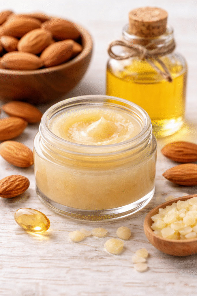 2. ಬಾದಾಮಿ ಎಣ್ಣೆ ಲಿಪ್ ಬಾಮ್ :