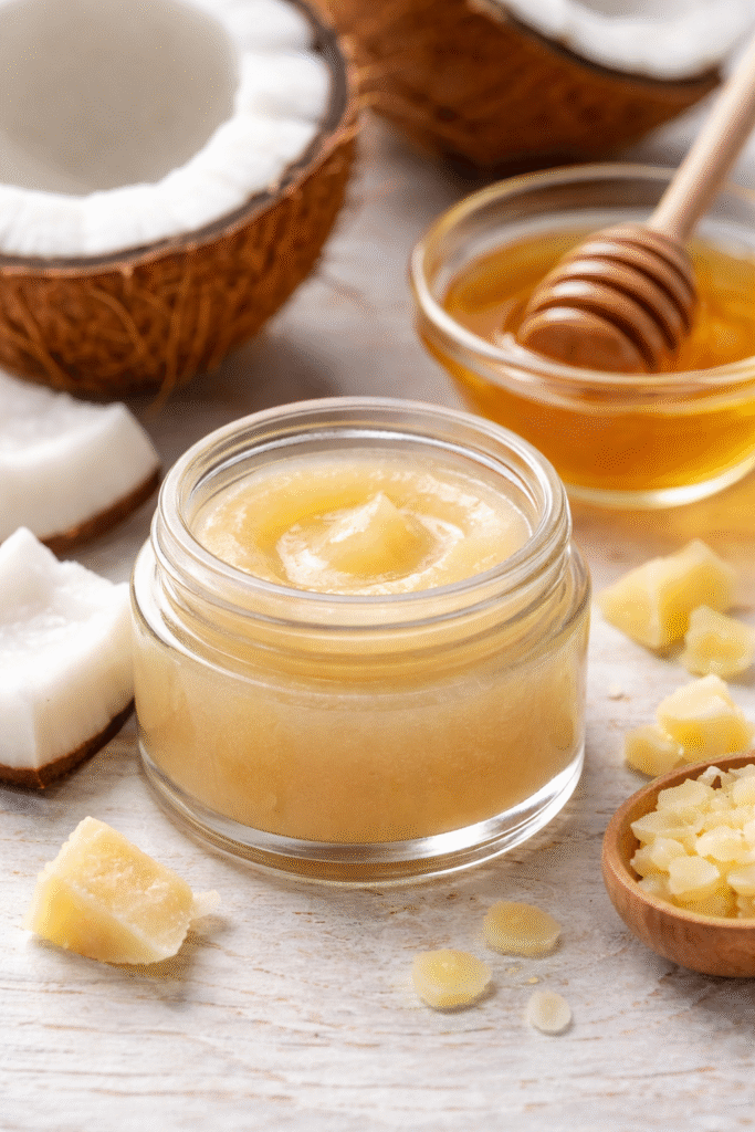 1. ತೆಂಗಿನೆಣ್ಣೆ ಮತ್ತು ಜೇನು ಲಿಪ್ ಬಾಮ್